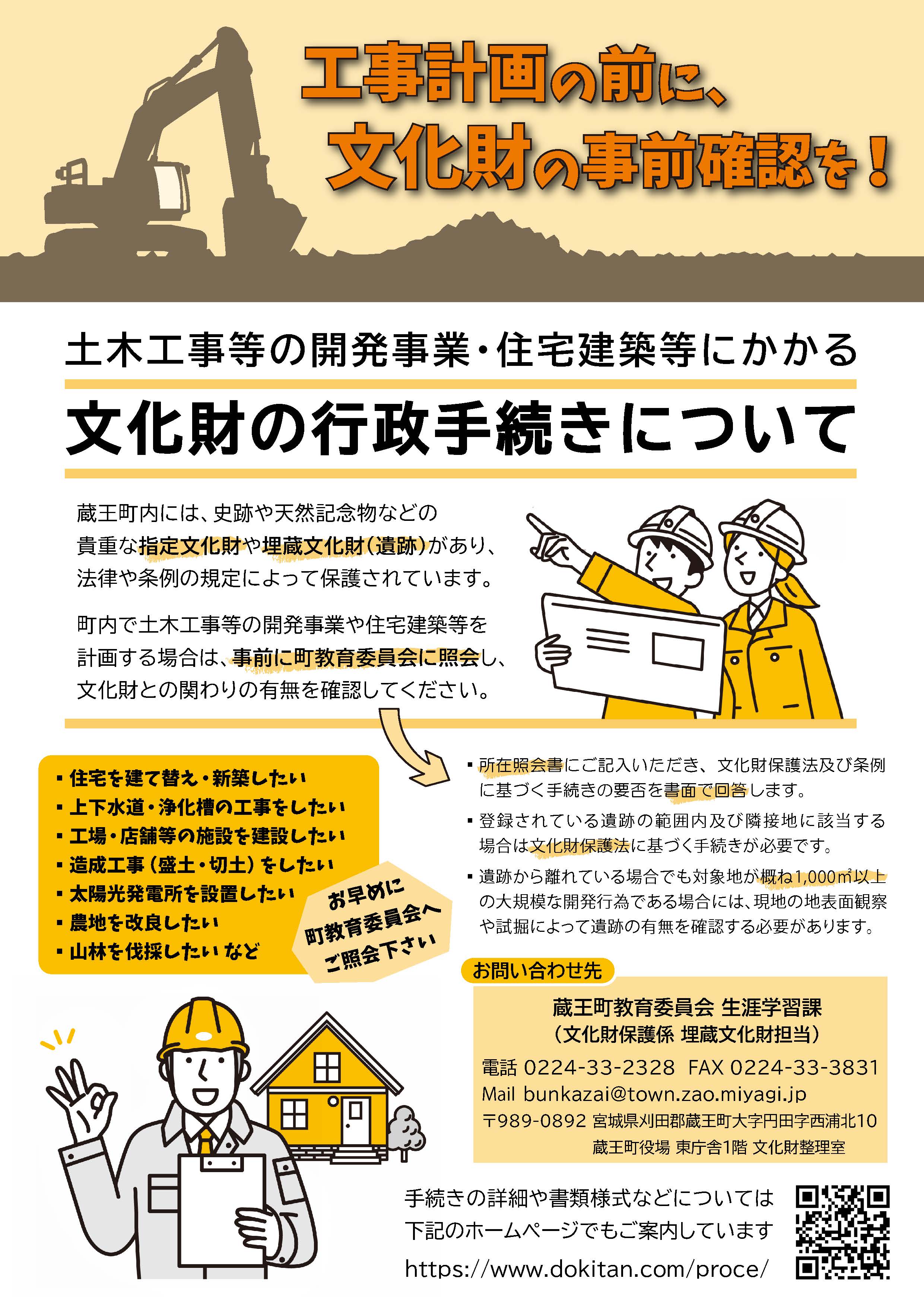 |  | ※ | ここで言う「発掘」とは、いわゆる「発掘調査」ではなく、「土木工事等のための発掘(掘削)」のことを指します。 |